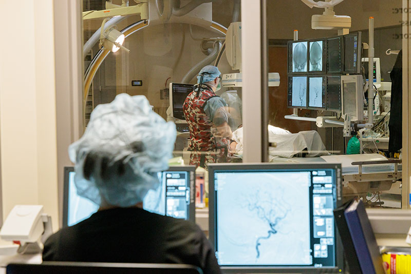 Using x-rays and other imaging techniques to see inside the body, interventional radiology (IR) uses image guidance and minimally invasive procedures to diagnose and treat diseases in almost every organ system. Once a diagnosis has been made, radiologists deliver targeted treatment through a small incision. Today, advances in the field are revolutionizing treatment options for common and serious medical issues. Also, because of the small incision, patients who have IR procedures generally have less pain, a lower risk of infection or complications, and shorter recovery times when compared to traditional open surgery procedures.